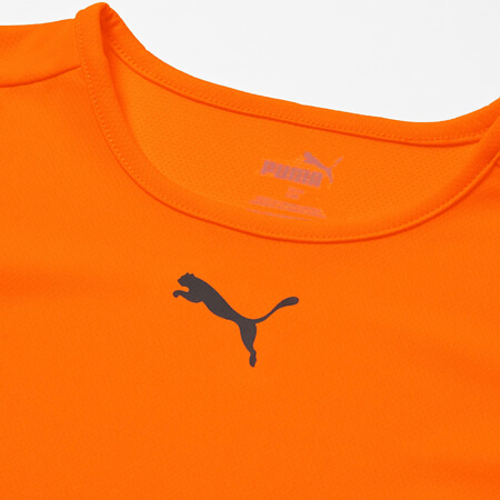 プーマのTEAM RISEコレクションの半袖ゲームTシャツ。吸水速乾の高機能素材により、衣服内をドライで快適に保つDRY CELLを搭載。