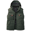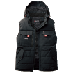 防風性・撥水性・耐久性を兼ね備えた肌触りの良いヌバック素材を使用した防寒べスト。耐久性にも優れているので、屋外での現場作業に最適です。フルハーネスの装着に対応する本格的なミリタリールックスのハイブリッド防寒着です。フードはマジックテープ+ボタンで脱着可能、フードを外した後もボタンを隠せる仕様なのがうれしいポイント。