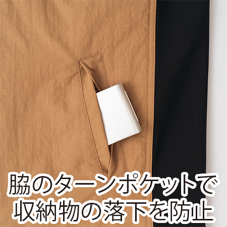 ●素材/表地①:リップストップ(ナイロン100%)、表地②:3層ニット(ポリエステル85%、ポリウレタン15%)、裏地:タフタ(ポリエステル100%)、中綿:(ポリエステル100%防風)