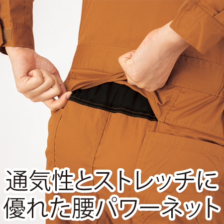 オールシーズン対応、ベーシックなデザインのツナギです。ゆったりデザインと着心地のよさはそのままに、お手入れの簡単さも加えたポリエステル混紡(T/C素材)のツナギ。着脱が楽な「楽脱ファスナー」、パワーネットも装着しているので動きやすく機能的です。
