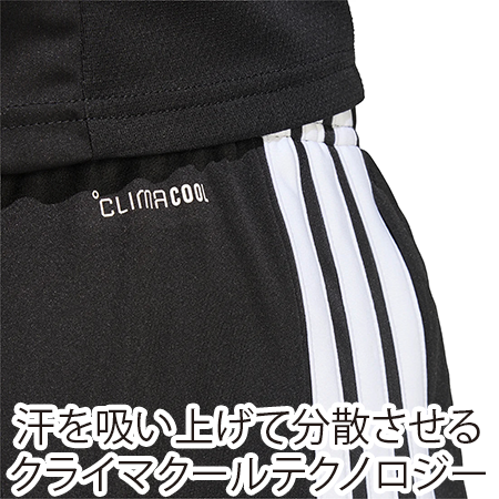 しっかりとした着心地と動きやすいスタイリッシュなシルエットを実現。汗を吸い上げて分散させるクライマクールテクノロジーを生地に組み込み、涼しくドライな着心地。激しい試合中でも爽やかで快適な着用感をキープする。ウエストドローコードでフィット感を調整可能なのもうれしいポイント。