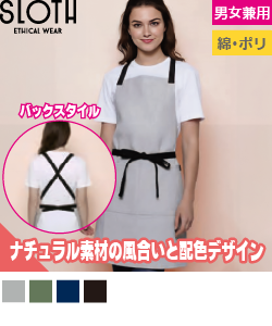 ユニフォーム素材で丈夫で長持ち、シンプルデザインのエプロン。エコ素材を使用した配色が特徴のエプロン。