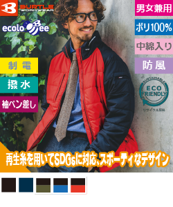 リバーシブルタイプのエコブルゾンです。軽くてやわらかな風合いの再生ポリエステルを使用したリバーシブルブルゾン。温室効果ガス削減を促進する、カーボンオフセットが付いています。