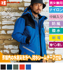雨の侵入を防ぐ!高い防水性と透湿性の高機能防寒。極細繊維マイクロ中綿を使用し保温性もバッチリ。目貼りテープ仕様で水や冷気の侵入を防ぎます。
