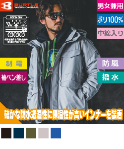 透湿性裏アルミ素材「MEGA HEAT」による高レベルの保温性+透湿性に撥水機能を有したTSデザインの中で最も温かい制電防水防寒ジャケット。JIS T8118適合の静電気帯電防止作業服。